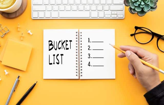 A bucket list is an itemized of experiences one wants to have before life ends. It comes from the phrase “kick the bucket”, which informally means to Pass from physical life and lose all bodily attributes. So, it’s a list of things we want to do before we kick the bucket. Often, a bucket list includes big accomplishments, travel, and fun things we’d like to experience in our lives