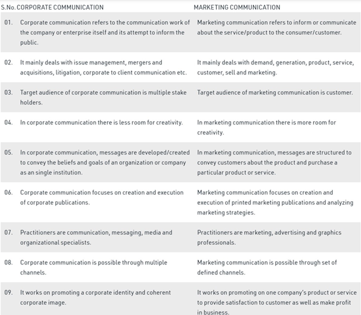 The main difference between corporate and marketing communications is the target audience. Corporate communications are targeted toward the stakeholders of an organization, such as media, investors, clients and analysts. Marketing communications are targeted to consumers of goods and services, says noted Business Astrologer cum Astro Strategist Hirav Shah.