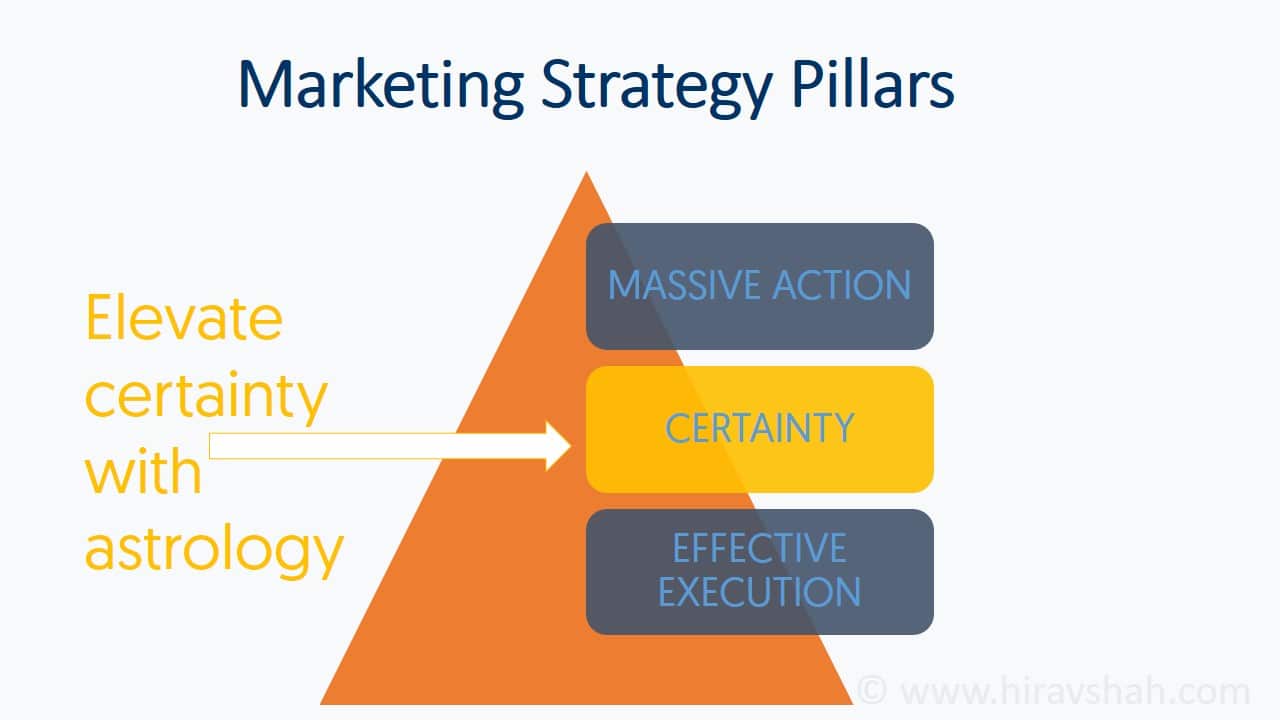 Certainty is the confidence booster and you can increase it with Astrology. E.g. When you see a child learning how to walk, you see how many times he falls and gets up to try again. You know quite well that he will be walking like a pro before he is 2. This is certainty and when it comes to marketing strategies for business, Astrology is one tool you can utilize. It can calculate many things in advance to give you a timeline for your success. This will increase the belief in yourself and help you advance easily.