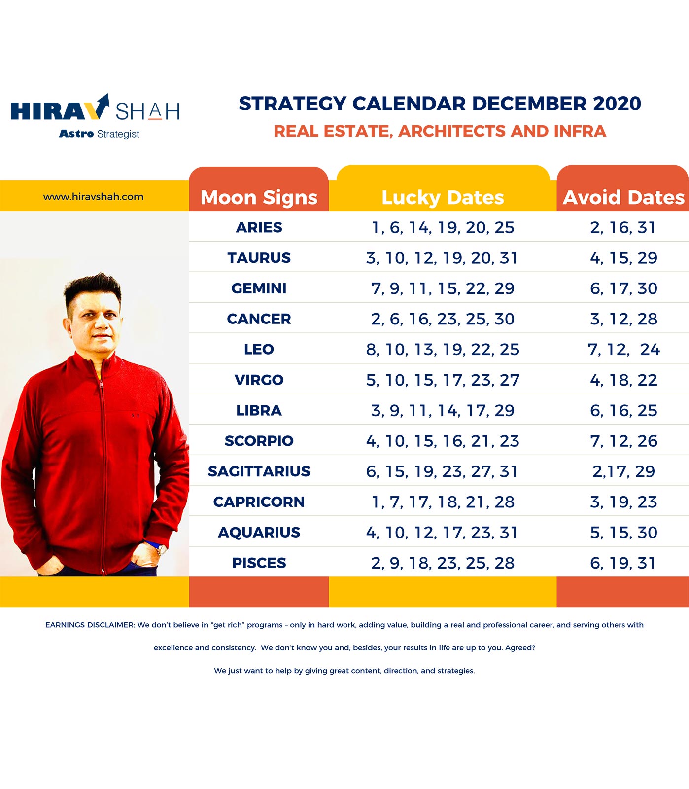 Use this most helpful strategy calendar as your Lucky Charm and Guide says Astro Strategist Hirav Shah.